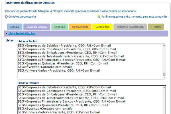 Os Contatos de sua base de dados podem ser armazenados conforme o perfil, a origem, o projeto, ou qualquer característica que você tenha definido para a Lista em questão. Sua necessidade e imaginação é que irão definir quais e quantas Listas de Contatos irá criar.